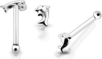 Echt Silber (Sterling Silver) gerade Nasenpiercing Stecker Delfin Form