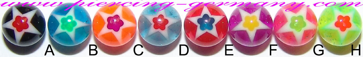 Bio UV Piercingschmuck Multi Color Gewinde Kugeln mit Stern logo 100% verträglich