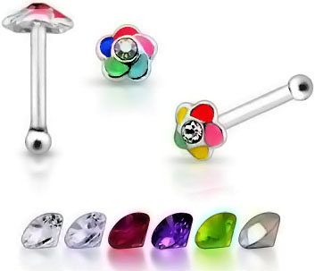 Nasenpiercing Aufsatz Form: Blumen mit Glitzerstein/ Kristall (Siehe Bilder)