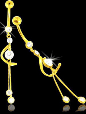 Gelb-Gold Piercingschmuck Banana Stecker + Kugel + Anhänger + Glitzersteine geeignet für: Bauchnabel, Intim, Christina Piercing & Co.