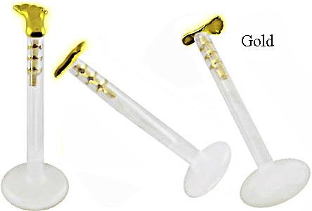 Material: Piercingschmuck Flat-Back Stecker aus Bioplastik und Fuß Aufsatz Stecker aus 14kt / 585er echt Gold.