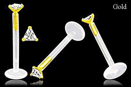 Material: Piercingschmuck Flat-Back Stecker aus Bioplastik und Glitzerstein-Kugel/ Aufsatz Stecker aus 14 Karat/ 585 echt Gold.