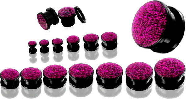 Material: Ohr Piercingschmuck Glitzer Gewinde Flesh-Tunnel aus Schwarz Bioplastik