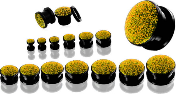 Bio Logo Gewinde Flesh-Tunnel Art: Ohr Flesh-Tunnel mit UV Glitzer (Gewinde Flesh-Tunnel).