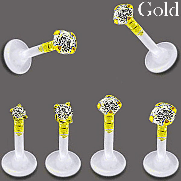 Material: Piercingschmuck Flat-Back Stecker aus Bioplastik und Glitzerstein-Kugel/ Aufsatz Stecker aus 14kt / 585er echt Gold.