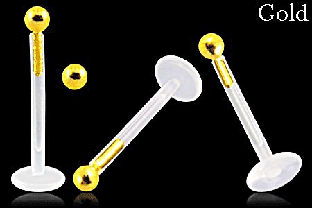 Material: Piercingschmuck Flat-Back Stecker aus Bioplastik und Stecker-Kugel/ Aufsatz Stecker aus 14kt / 585er echt Gold.