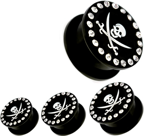 Totenkopf Gewinde Piercing Flesh Tunnel mit Kristallen