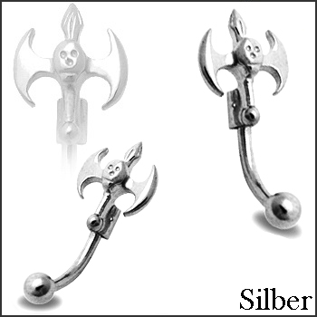 Material: Piercing Banana Stecker aus Chirurgenstahl und Teufels Doppel Axt Fassung/ Aufsatz aus 925%er echt Silber (Sterling Silver)