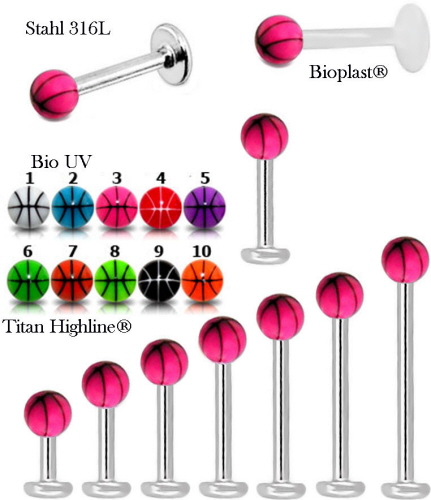 Material: Piercing Flat-Back Stecker aus Titan Hochglanzpoliert, Chirurgenstahl oder Bioplast® und Kugel aus UV Bio-Synthetik.