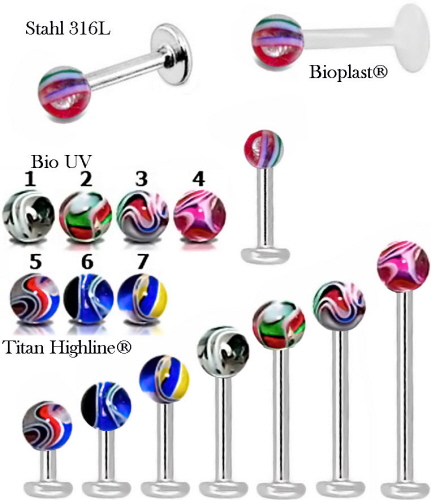 Achtung: Die Farbe und Musterung von jeder Piercingschmuck Kugel kann sich von der anderen unterscheiden, allerdings bleiben die Grundfarben, siehe Produktbild, die gleichen.