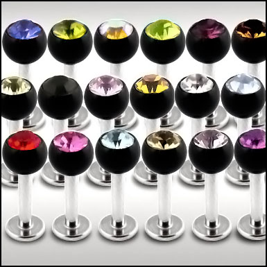 Material: Piercing Flat-Back Stecker aus Titan Hochglanzpoliert, Chirurgenstahl oder Bioplast® und Glitzerstein Kugeln aus UV Bio-Synthetik.