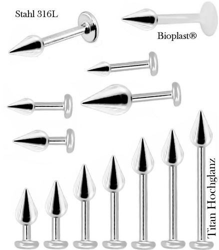 Material: Piercing Flat-Back Stecker aus Titan Hochglanzpoliert, Chirurgenstahl oder Bioplast® und Gewinde Kegel aus Chirurgenstahl.