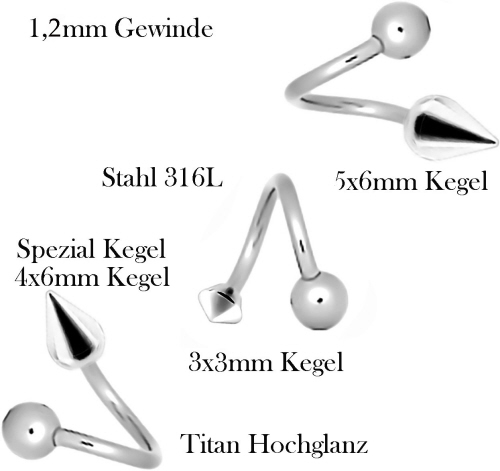 Lieferbare Spiralen Ring mit Kegel oder Kugel Kombinationen: