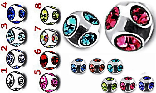 Anzahl der Glitzersteine auf der 4mm Gewinde Kugel: 5 Stück.
