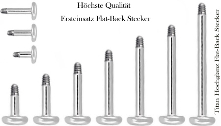 Titan Flat-Back Steckerlänge: 5.0mm, 6.0mm, 7.0mm, 8.0mm, 10.0mm, und 12.0mm, 14.0mm, 16.0mm, und 18.0mm.