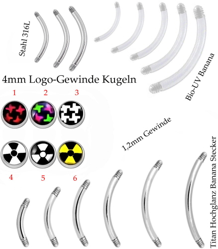 Lieferung mit 2x Logo Gewinde Kugel und 1x Banana Piercing Stecker!