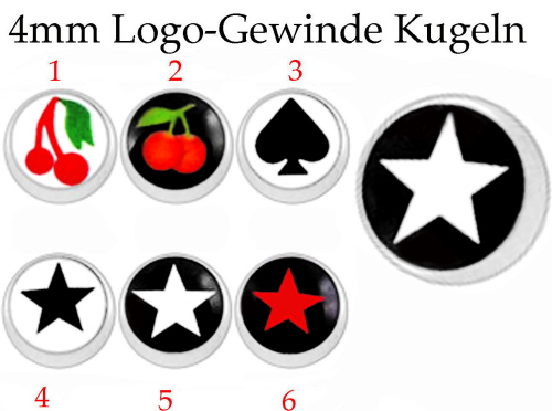 Material: Multi Color Stern, Pik-Ass, Kirsche Logo Piercingschmuck Gewinde Kugeln aus Chirurgenstahl.