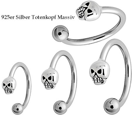 Material: Piercingschmuck Circular-Barbell Ring aus Chirurgenstahl und Totenkopf aus massiven 925 echt Silber.