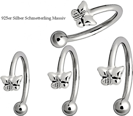 Material: Piercingschmuck Circular-Barbell Ring aus Chirurgenstahl und Schmetterling aus massiven 925 echt Silber.