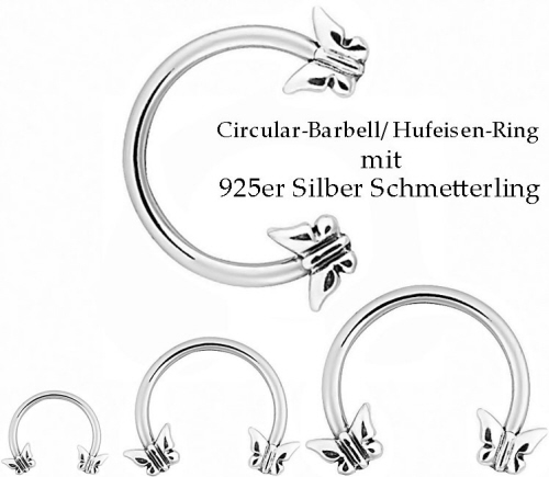 Material: Piercingschmuck Circular-Barbell Ring aus Titan Hochglanz-Poliert oder Chirurgenstahl und Schmetterlinge aus massiven 925er Echt Silber.
