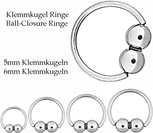 Material: Piercing Klemmkugel Ringe/ Ball-Closure Ring aus Titan Hochglanzpoliert oder Chirurgenstahl und die Klemmkugel aus Chirurgenstahl.
