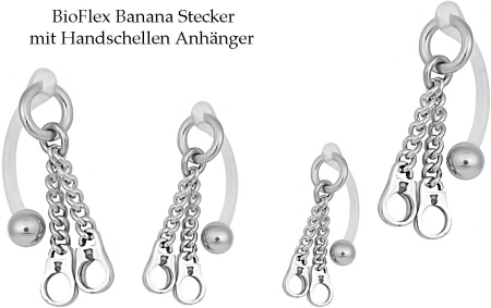 Material: Piercing Stecker aus hochwertigen Bioflex Spezial Kunststoff und Ring, Handschellen Anhänger aus hochwertigen Chirurgenstahl und Gewinde Kugel aus hochwertigen Chirurgenstahl oder Titan.
