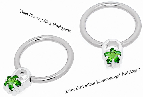 Material: Piercing Klemmkugel/ Ball-Closure Ring aus Titan Hochglanzpoliert oder 'Chirurgenstahl und die Klemmkugel + Anhänger + Fassung aus 925 echt Silber mit Multi-Schliff Kristall.