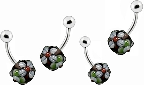 Material: Piercingschmuck Banana Stecker, obere Gewinde Kugel aus Titan oder Chirurgenstahl Hochglanzpoliert und Blumen Logo Kugel aus Glas.