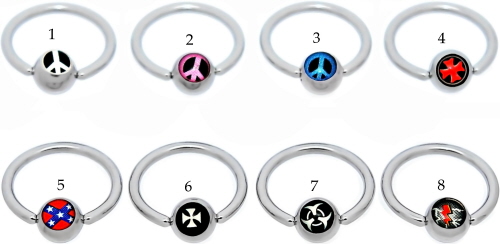 Material: Piercing Ring aus Titan-Hochglanzpoliert oder Chirurgenstahl und die Logo Ball/ Kugel aus Chirurgenstahl.