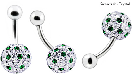Piercingschmuck mit Grün Weißen SW Kristallen