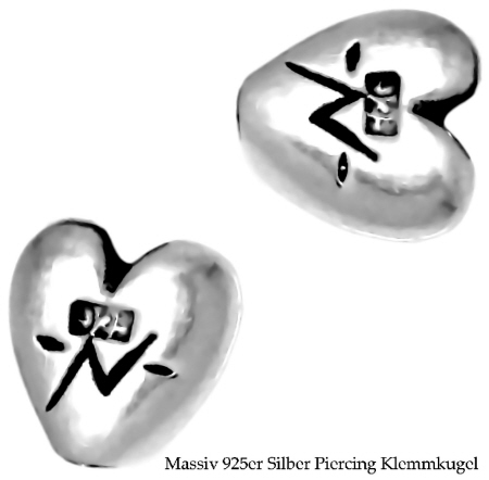 Material: Herz Piercing Klemmkugel aus massiven 925er Echt Silber.