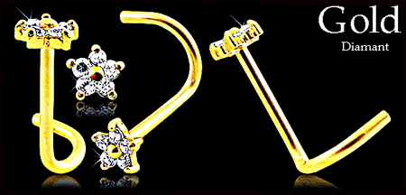 Material: Nasenpiercing Stecker und Fassung komplett aus 14kt/ 585er echt massiv Gelb-Gold mit 5 x 1,5mm echten Diamanten.