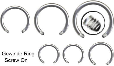Hufeisenring/ Circular-Barbell Gewinde Ring Innendurchmesser: 5.0mm, 6.0mm, 7.0mm, 8.0mm, 9.0mm, 10.0mm, 12.0mm, 14.0mm, 16.0mm.