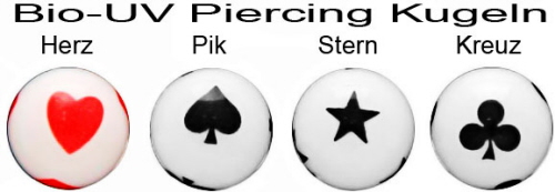 Material: Herz, Pik, Stern, Kreuz Piercing Gewinde Kugeln aus Bio Synthetik.