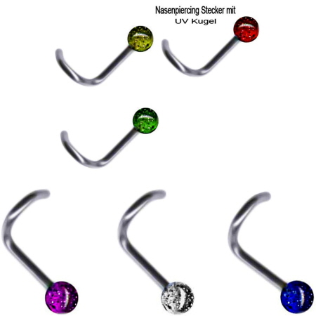 Nasenpiercing Stecker Form/ Art: Gebogener Nasenstecker mit Acryl UV Kugel.