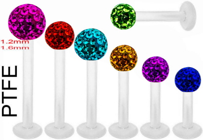 Material: Piercing Flat-Back Labret Stecker aus ptfe und Kugeln aus Chirurgenstahl oder Titan.