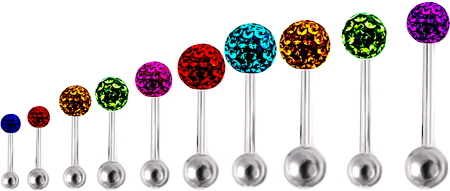 Material: Piercing Stecker/ Barbell/ Hantel aus Titan oder Chirurgenstahl und Multi Kristall Kugeln aus Swarovski oder Optima Kristallen mit Spezial Beschichtung.