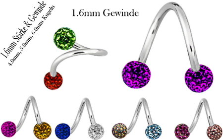 Material: Piercingschmuck Spiralen Ring aus Titan Hochglanzpoliert oder Chirurgenstahl und Multi Kristall Gewinde Kugeln aus Swarovski oder Optima Kristallen.