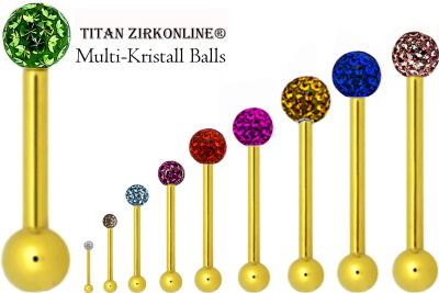 Material: Piercing Barbell/ Hantel Gewinde Stecker und Untere Kugel aus Titan Zirkonline. mit Multi-Kristall Swarovski oder Optima Kugel.