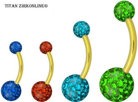 Titan Gold Color Banana Piercing Stecker mit SW Multi Kristall Gewinde Kugeln