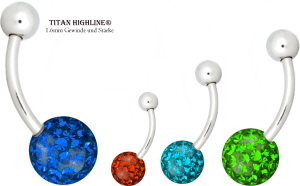 Material: Piercing Banana Gewinde Stecker aus Titan Highline® Hochglanzpoliert oder Chirurgenstahl mit Multi-Kristall Swarovski oder Optima Kugel.