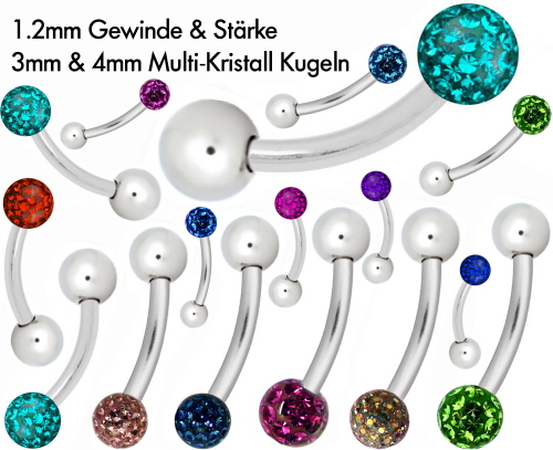 Material: Piercing Banana Gewinde Stecker aus Titan Highline® Hochglanzpoliert oder Chirurgenstahl mit Multi-Kristall Swarovski oder Optima Kugel.
