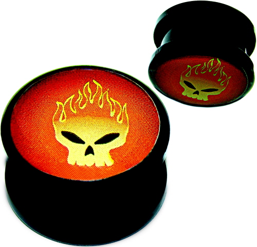 Flammen Totenkopf Logo Piercing Gewinde Plug
