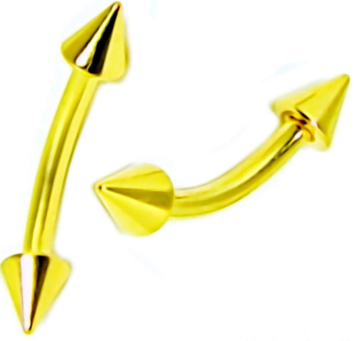 Material: Piercingschmuck gebogener Banana Stecker und die Kegel aus Chirurgenstahl 24kt Gold vergoldet