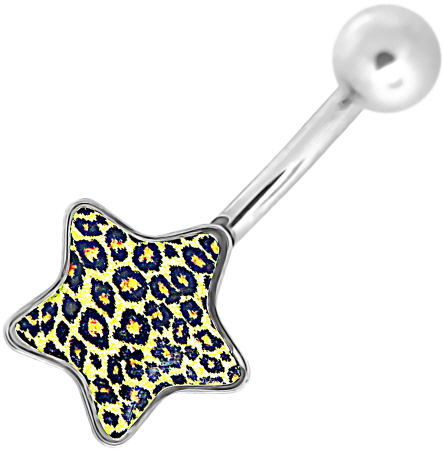 Material: Piercing Stecker, Kugel und Stern aus Chirurgenstahl Hochglanz mit Leoparden Muster.