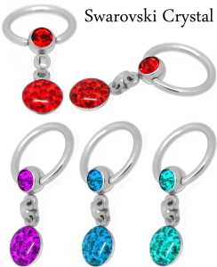 Material: Piercing Ring aus Titan hochglanzpoliert oder Chirurgenstahl und Anhänger aus Chirurgenstahl hochglanzpoliert. Kristalle sind Swarovski mit Spezialbeschichtung.