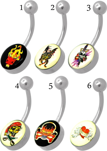 Material: Piercing Stecker und obere Kugel aus Titan Hochglanzpoliert oder Chirurgenstahl und untere Kugel aus Chirurgenstahl hochglanzpoliert mit Bild/ Picture Logo
