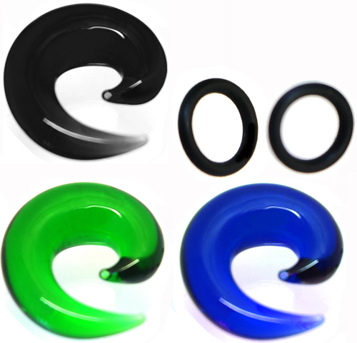 Blau, Durchsichtig, Rosa, Schwarz, Grün, Glas Ohr Piercing Expander Spiralen Plug