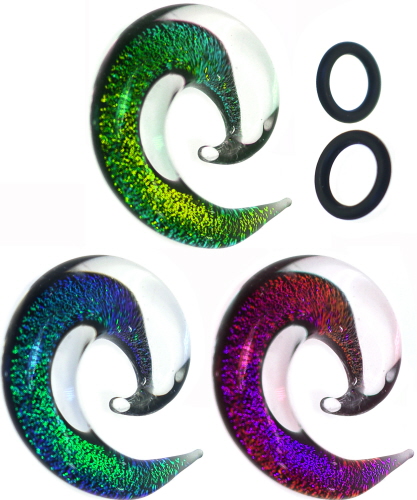 Blau, Regenbogen, Durchsichtig Multi-Color Glas Ohr Piercing Expander Spiralen Plug