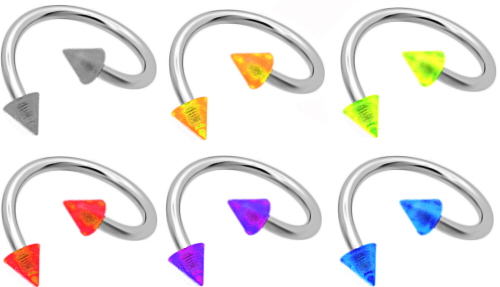 Material: Piercing Spirale aus Titan Hochglanz oder Chirurgenstahl und die Kegel aus Bio Kunststoff